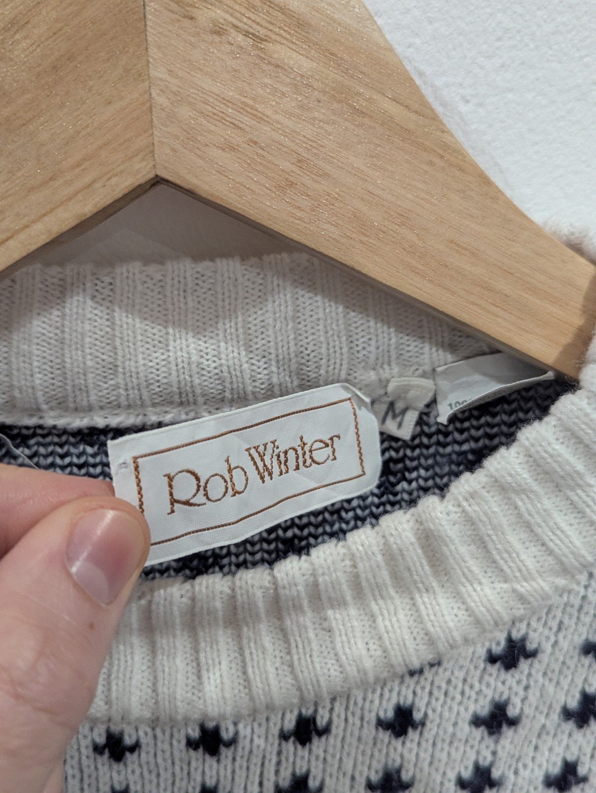 The Vintage White Rob Winter Patterned Cardigan Jumper in size Medium is a stylish and retro piece perfect for the winter season.