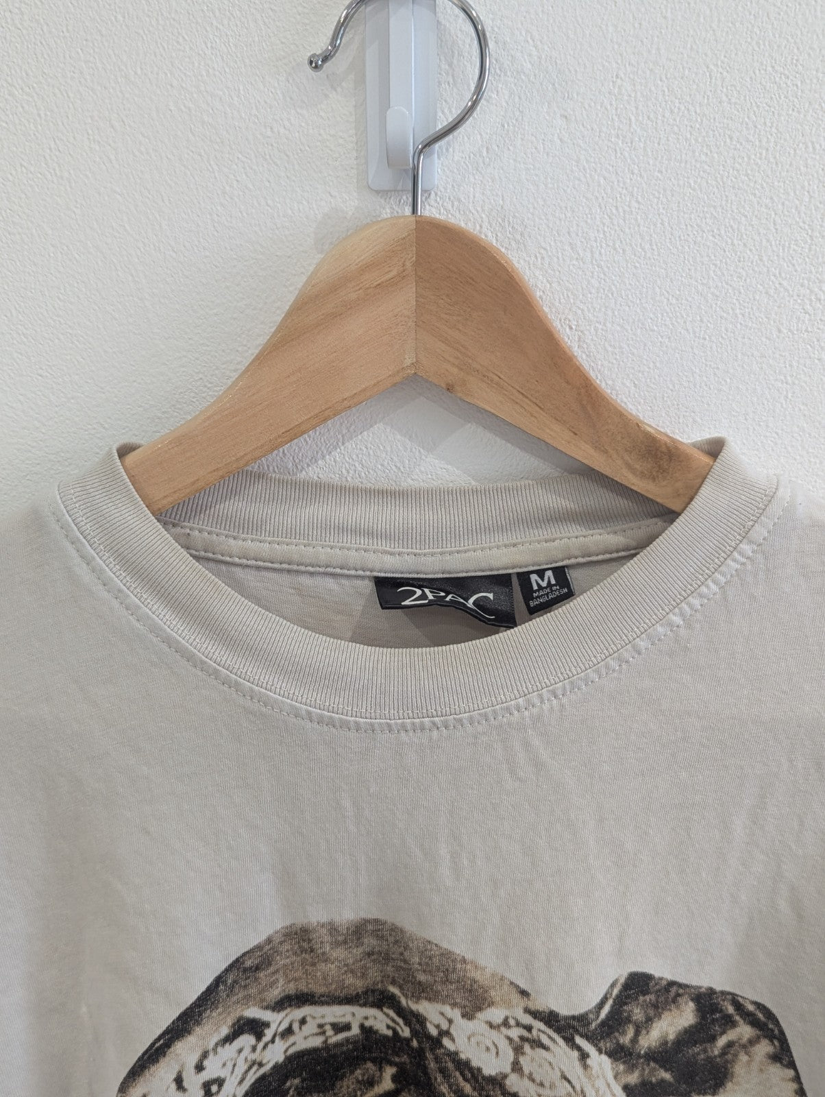 This Vintage Style Tupac T Shirt in size medium features a classic design with a white colour and short sleeves, made from comfortable cotton material.